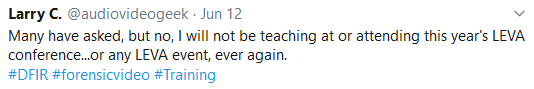 • Apparently, the above Tweet has led some to believe that I am angry with LEVA.  I assure you that I am not.  You see, I build bridges, I don't burn them.
