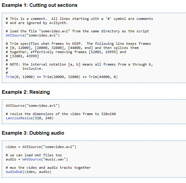 "AviSynth is a powerful tool for video post-production. It provides ways of editing and processing videos. AviSynth works as a frameserver, providing instant editing without the need for temporary files. AviSynth itself does not provide a graphical user interface (GUI), but instead relies on a script system that allows advanced non-linear editing. While this may at first seem tedious and unintuitive, it is remarkably powerful and is a very good way to manage projects in a precise, consistent, and reproducible manner."
