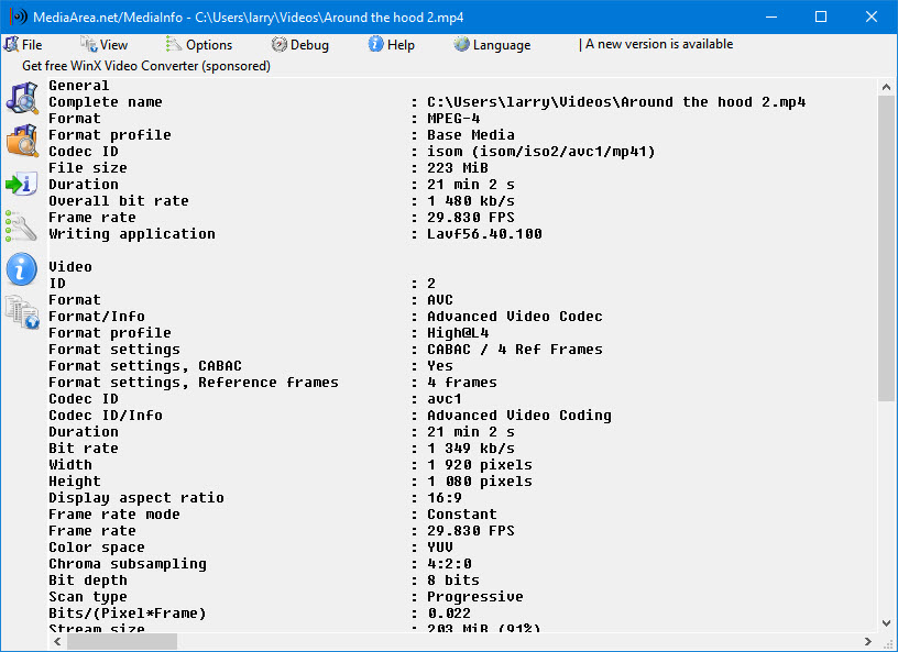 "MediaInfo is a convenient unified display of the most relevant technical and tag data for video and audio files."